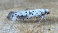 Vulnerable (proposed as a future Red Data Book species) and recorded only from woodland on chalky soils in parts of Hampshire and Kent. Very local and occasional in Hampshire, first recorded in 2001 when nine were trapped on The Moors Local Nature Reserve, Bishop's Waltham. Not recorded again until 2008, when an individual was recorded to light in the New Forest, with another the following year from Longstock in the Test valley. However, since 2020 this species has become regular in small numbers, the majority again from sites in the Test valley; the reason for this uptick in reports is not clear - it may previously have been a rare migrant from the continent which has now become established; it has not been recorded from the Isle of Wight to date. Wingspan 19-25 mm. Larva feeds on Spindle, living within a silken web.