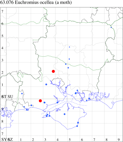 VC11: Brockwood, one, 19 Jul (SDut); Blashford Lakes HIWWT NR, 12, 29 Jun; two, 20 Jul; four, 22 Jun; two, 06 Jul; one, 13 Jul (PWhtk); North Poulner, Ringwood, present, 19 Jul (ASho); Howen Bottom, NF, one, 22 Jul (AMD); Marchwood, one, 31 Jul; one, 01 Sep; one, to pheromone lure, 23 Jul (CTha); Mottisfont, one, 30 Jul; one, 19 Jul; two, 02 Aug (TSto); Fishlake Meadows, one, 12 Aug (NRJ); Romsey, one, 29 Jun; one, 31 Jul (MJB); one, 29 Jun; one, 31 Jul; one, 10 Aug (NRJ); Dibden Purlieu, one, 23 May; four, 25 May; one, 26 May; two, 26 Jun; Dibden Purlieu, NF, two, 29 Jun; Dibden Purlieu, three, 18 Jul; one, 18 Jul; one, 19 Jul; two, 19 Jul; Dibden Purlieu, NF, one, 20 Jul; one, 20 Jul; Dibden Purlieu, one, 05 Aug; one, 10 Aug; Dibden Purlieu, NF, one, 01 Sep (RAC); Itchen Valley CP, one, 19 Jul (CTha); Brownwich Cliffs, Titchfield, one, 26 Jul (F.M.G.); Hill Head, one, field obs., 31 Jul (RTof); Funtley, one, 29 Jun; two, 19 Jul; five, 20 Jul; three, 30 Jul; two, 01 Aug; four, 02 Aug; one, 06 Aug; one, 12 Aug (TDC); Fareham, one, 23 Jun (ADT); Wickham, two, 25 Jun (JRDS); Waterlooville, one, 23 Jun; one, 26 Jul (DWhe); Christchurch: Cross Way, one, 19 Jul; one, 30 Jul (LPyk); Hengistbury Head, one, 18 Jul; one, 26 Jun (MJef); Sway, one, 19 Jul; one, 30 Jul; one, 31 Jul (SKee);