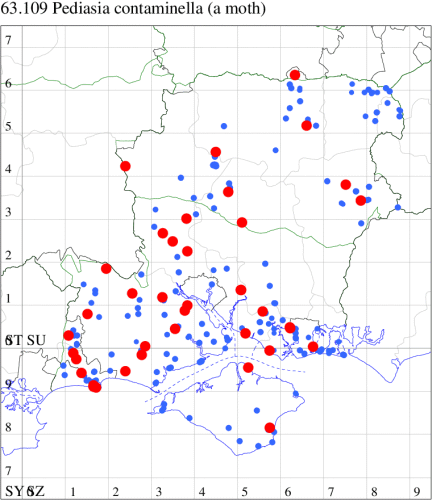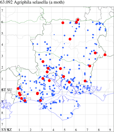 VC11: Portsmouth, one, 01 Aug (IRT); Waterlooville, one, 27 Aug (DWhe); Muscliffe, one, 01 Aug (CMur); Hengistbury Head, one, 30 Jul (MJef); Stanpit Marsh LNR, one, 27 Jul (PAB); one, 13 Aug (RPH); Hengistbury Head, one, 18 Jul (MJef); Sway, one, 30 Jul (SKee)