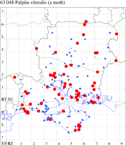 Immigrant to south-western England from southern Europe. In Hampshire and on the Isle of Wight recorded in most years, chiefly on the Isle of Wight and near the Hampshire coast, occasionally making it as far north as vice-county 12. Wingspan 27-31 mm. Unmistakable. Larva feeds on Summer Jasmine, Olive, Wild Privet and similar, no evidence of breeding in the UK.