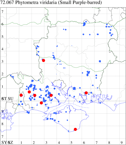 VC11: Blashford Lakes HIWWT NR, one, 20 Jul; one, 03 Aug (PWhtk); Woodlands, NF, one, 21 Jul (RBW); Lee, one, 06 Jul (CTha); Mottisfont Abbey NT, nr Romsey, one, 01 Jul; one, 29 Jul (TSto); Romsey, one, 24 Jun; one, 01 Jul; one, 12 Jul (MJB); one, 09 Jul; one, 02 Aug (NRJ); Dibden Purlieu, one, 18 Jul; one, 19 Jul; one, 19 Jul; Dibden Purlieu, NF, one, 20 Jul (RAC); Blackfield, one, 26 Jul (SJJ); Allbrook, one, 27 Jun (SIng); Botley, one, 01 Aug; one, 15 Sep (SLB); Dean, Bishop's Waltham, present, 13 Jul; present, 18 Jul (CMor); Wickham, one, 30 Jul (JRDS); Lovedean, one, 25 Jul; one, 27 Jul (ARJa); Horndean, present, field obs., , 24 Jul (NaJac); present, , 24 Jul (YEva); Hurn, one, 27 Jul (MJef); Sway, one, 17 Jul; one, 18 Jul; one, 27 Aug (SKee);