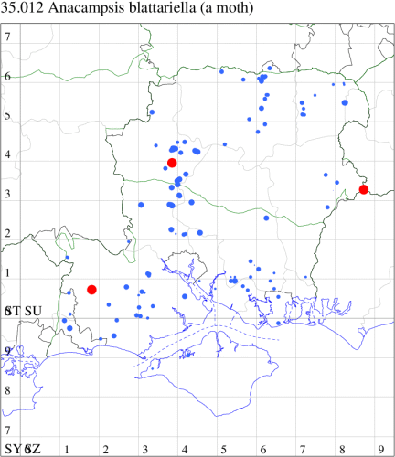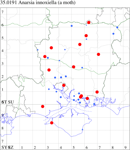 Since the separation of the two species, a number of records of A. innoxiella were discovered in southern England, and in our area it is reasonably widespread in Hampshire and was taken on Isle of Wight for the first time in 2021.