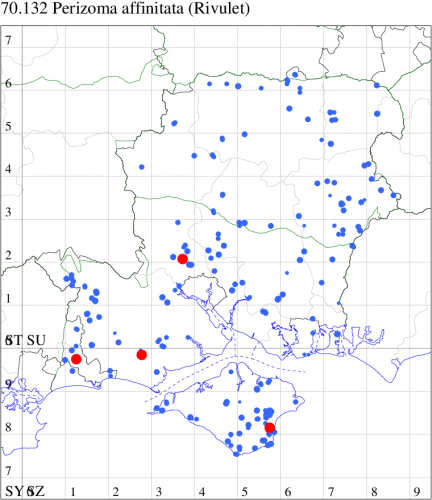 VC12: Earliest: North Waltham, 13 Apr, 1 (AJon) Latest: Windmill Hill, Chalton, 23 Oct, 1 (CJP) Max count: Stockbridge Down, 06 Aug, 8 (HVau)