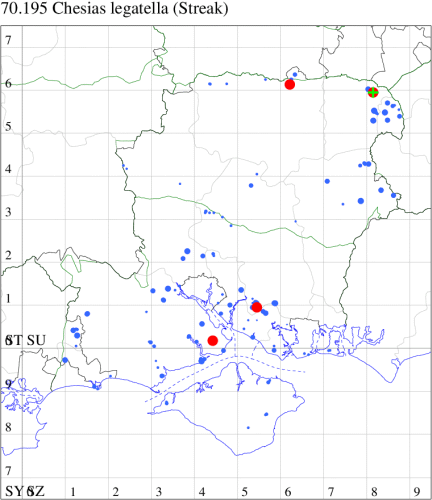 VC11: Earliest: Sway, 12 Apr, 1 (SKee) Latest: Portchester, 28 Sep, 1 (CEH, JGS) Max count: Dibden Purlieu, 10 Aug, 4 (RAC)