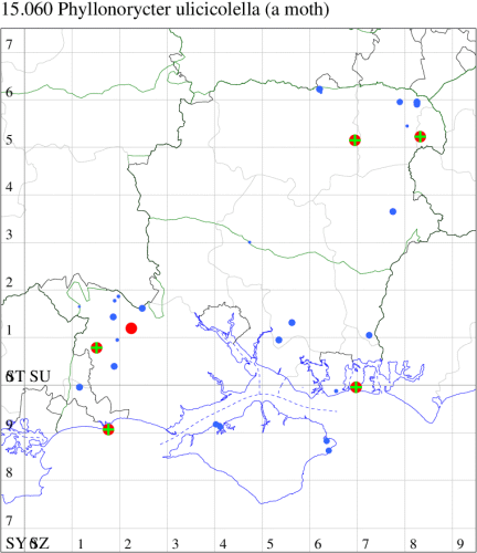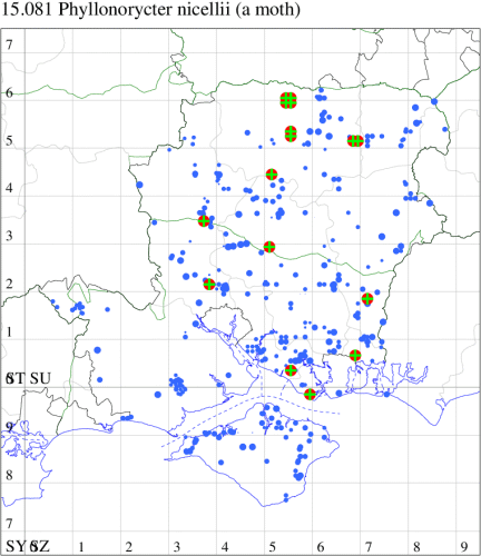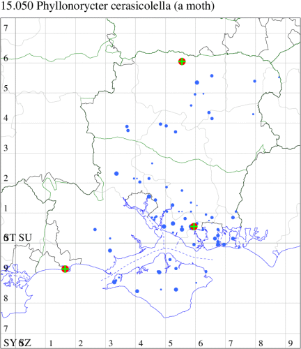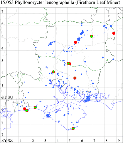 VC11: Peartree Green, Southampton, mine, present, 06 Oct; Stanpit Marsh LNR, mine, present, on oak, 04 Oct; larva, five, field obs., on oak, 04 Oct (PAB); Sway, one, 23 Jul (SKee);