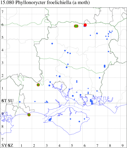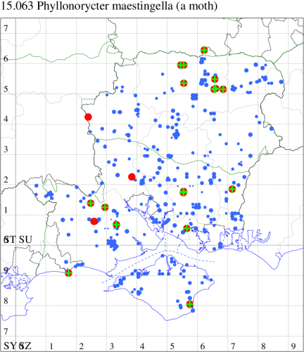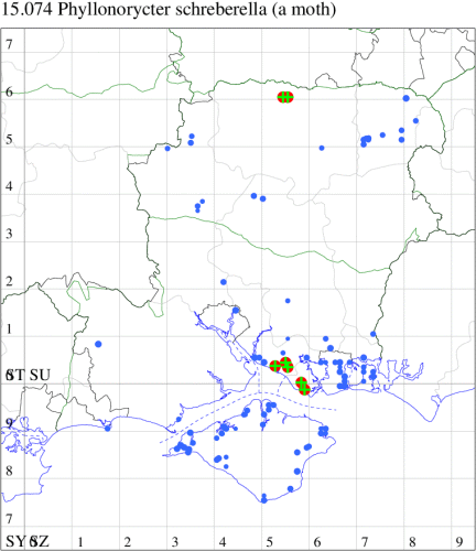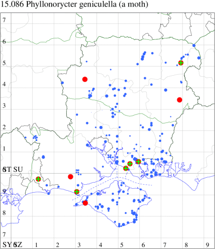 VC11: Swaythling, Southampton, one, 30 Aug (MEdg); Itchen Valley CP, one, 19 Jul (CTha); Stubbington, two, 25 Oct; one, 01 Nov (DPH); Lee-on-Solent, one, 02 Jul (IHrg); Fareham, two, 15 Oct (IMcP); Cams Bay, Fareham, mine, present, 08 Sep (AMD); Waterlooville, two, 13 Aug; one, 26 Aug; one, 13 Sep; one, 24 Sep; one, 28 Oct; one, 31 Oct; one, 10 Nov (DWhe); West Meon, mine, present, on Fagus, 10 Jun; Oxenbourne Down, mine, present, 04 Oct (AMD); Christchurch: Cross Way, one, 16 Oct; one, 22 Oct (LPyk); Wick Fields, Hengistbury Head, vacated mine, present, several, 19 Feb; Hengistbury Head, mine, present, on English Oak, 22 Aug (MJef); vacated mine, present, 03 Sep; Hengistbury Head NNR, mine, present, on beech, 22 Oct (RPH det. MJef); mine, present, quercus ilex, 27 Oct (JOug); Sway, one, 30 Jul; one, 22 Oct; one, 29 Oct (SKee); Browndown, five, field obs., 30 Apr; five, field obs., 01 May (IHrg); Sinah Common, mine, present, on Quercus ilex, 12 Jan; three, at dusk, 07 Nov (AMD);