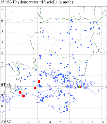 VC11: Hale, Fordingbridge, mine, present, betula, 21 Jul; Fritham, NF, mine, present, betula, 13 Oct (JOug); Romsey, one, 30 Jul (NRJ); Waterlooville, one, 30 Apr; one, 14 May; one, 26 Aug; one, 15 Sep; one, 17 Sep (DWhe); St Catherine's Hill, Hurn, mine, present, 14 Apr (PAB); Hengistbury Head NNR, mine, present, betula, 27 Oct (JOug); mine, present, 31 Oct (MJef);