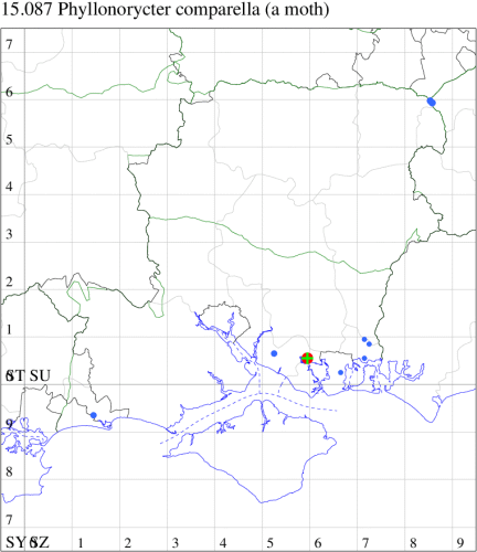 VC11: Thatchers Copse, Brownwich, mine, one, on Elm, 04 Aug; Ranvilles Lane, Fareham, mine, one, 29 Jun; Stubbington, mine, eight, on Elm, 06 Oct; mine, seven, on Elm, 06 Oct; Alver Valley CP, mine, three, on Elm, 13 Oct (DPH); Cams Bay, Fareham, mine, present, 08 Sep (AMD); Hengistbury Head, mine, present, 06 Oct; Hengistbury Head NNR, mine, present, several on elm re-growth, 31 Oct (MJef); Stokes Bay, mine, seven, on Elm, 04 Oct (DPH);