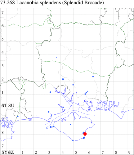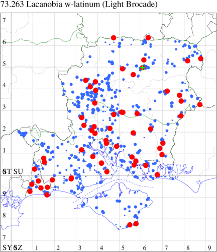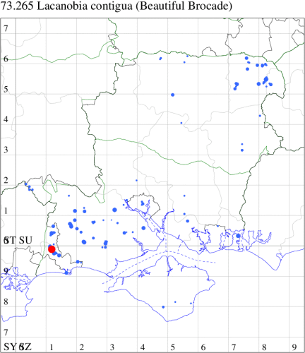 VC11: Blashford Lakes HIWWT NR, one, 15 Jun (PWhtk); one, 16 Jun (GLes); Mottisfont Abbey NT, nr Romsey, one, 20 Jun (TSto); Dibden Purlieu, one, 21 Jun (RAC); Allbrook, one, 24 Jun (SIng); Stubbington, one, 29 Jun (DPH); Portsmouth, one, 18 Jul (IRT); Hengistbury Head NNR, two, 02 Jul (BKin det. MJef); one, 10 Jul (HengistH det. MJef); one, 11 Jul (BKin det. MJef); Hengistbury Head, one, 03 Jun (MJef);