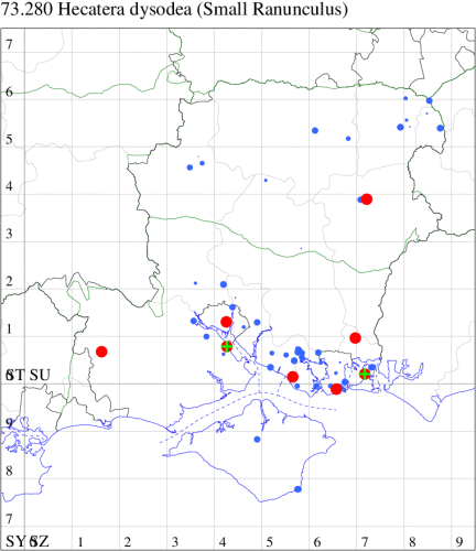 VC11: Earliest: Lee-on-Solent, 22 Jun, 1 (IHrg) Latest: Christchurch: Cross Way, 05 Sep, 1 (LPyk) Max count: Hengistbury Head, 30 Jul, 8 (MJef)