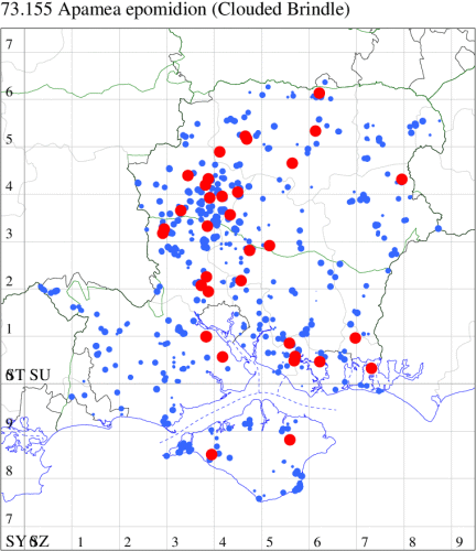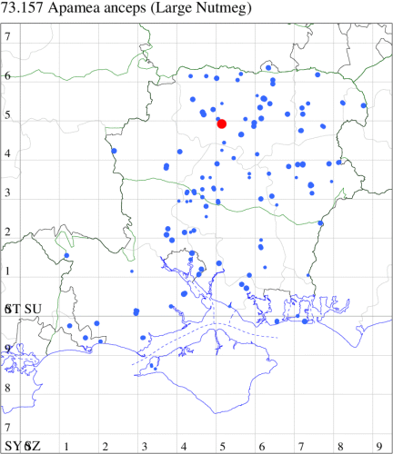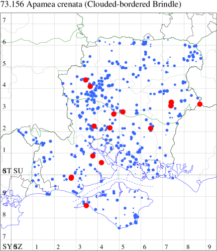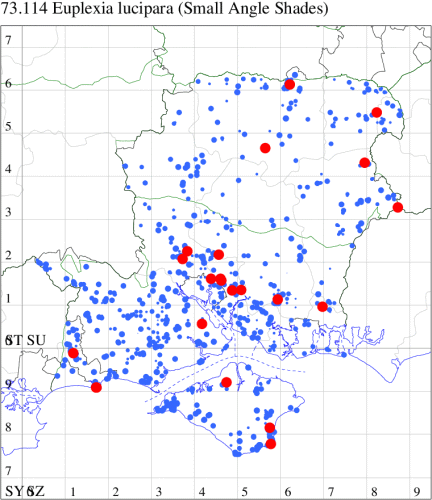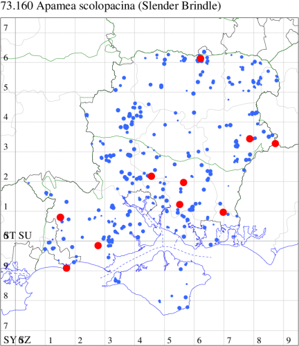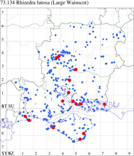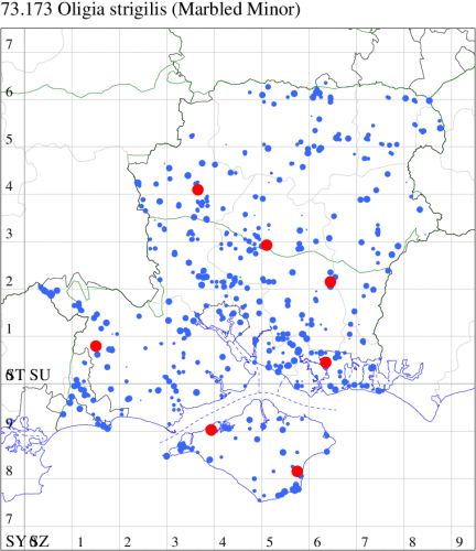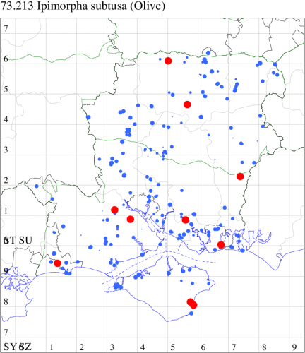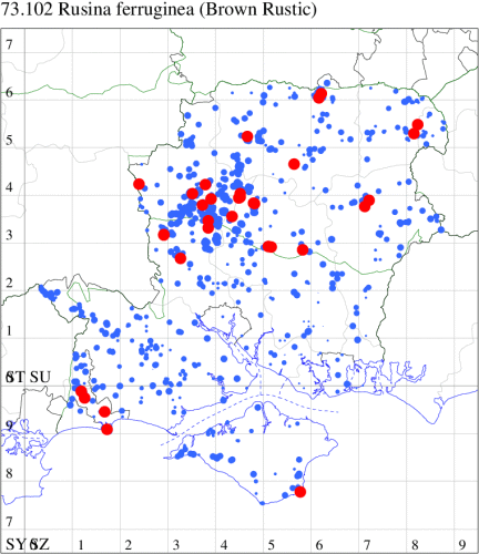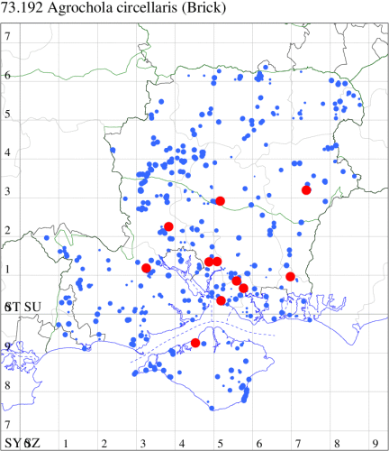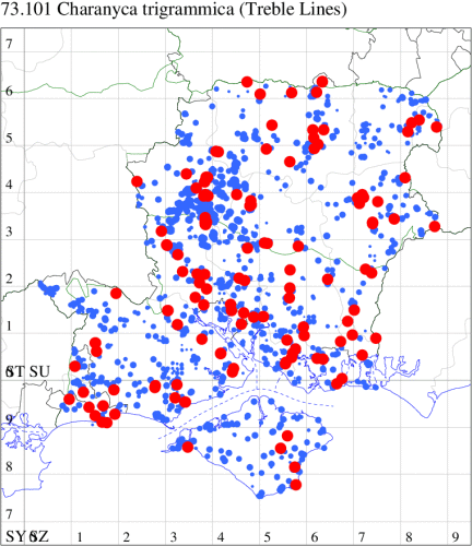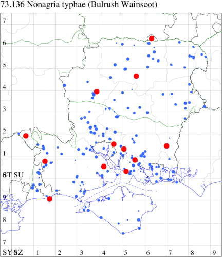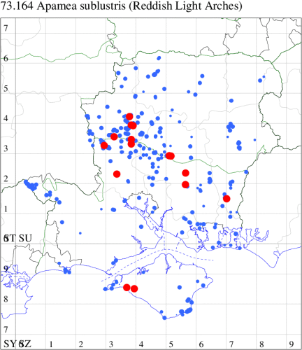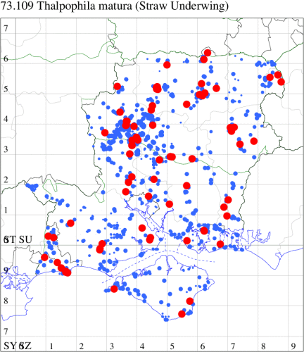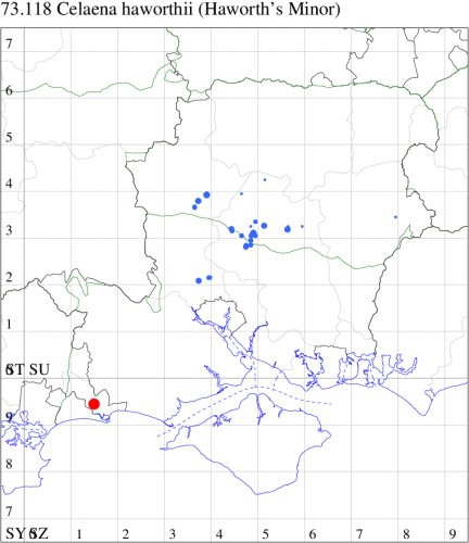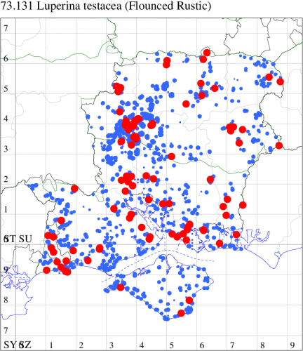 VC11: Marchwood, one, 19 Sep; one, 01 Sep; two, 06 Sep; one, 08 Sep (CTha); Woodlands, NF, one, 31 Aug (RBW); Lee, two, 06 Sep (CTha); Romsey, three, 01 Sep; five, 02 Sep; present, , 03 Sep (SRC); two, 30 Aug; three, 01 Sep; two, 03 Sep; one, 08 Sep; one, 16 Sep; one, 19 Sep (MJB); one, 01 Sep (NRJ); Stockbridge Down NT, one, 28 Aug (GCE); Dibden Purlieu, one, 28 Aug; Dibden Purlieu, NF, one, 01 Sep; one, 02 Sep; one, 07 Sep (RAC); Southampton, one, 19 Sep (MGP); West End, one, 01 Sep (AMD); Allbrook, two, 01 Sep; two, 02 Sep; one, 08 Sep; two, 20 Sep (SIng); Brownwich Cliffs, Titchfield, four, 06 Sep (F.M.G.); Funtley, four, 01 Sep (TDC); Fareham, one, 02 Sep; one, 08 Sep; one, 15 Sep (MLO); Botley, one, 01 Sep; one, 03 Sep; one, 13 Sep (SLB); Waterlooville, one, 08 Sep; seven, 06 Oct (DWhe); Northney, Hayling Island, present, 02 Sep; present, 13 Sep (JWP); Hurn, two, 11 Sep (MJef); Sway, one, 26 Aug; three, 01 Sep; one, 03 Sep; one, 08 Sep; two, 09 Sep (SKee); Sway, NF, present, 01 Sep (DMui);
