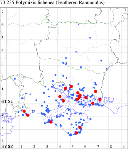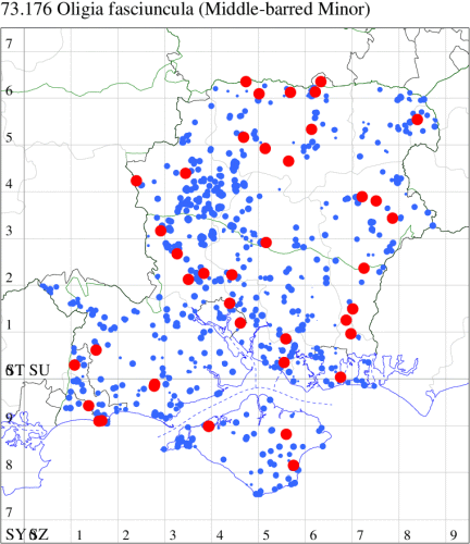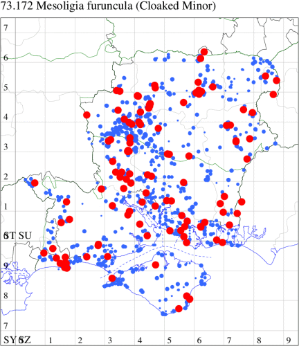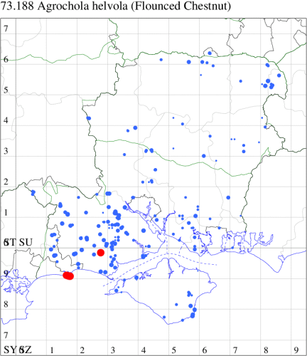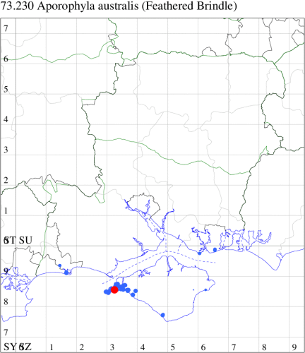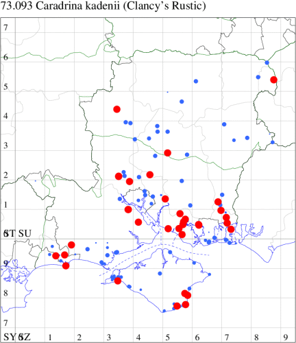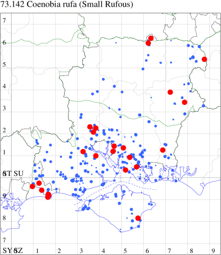 VC11: Earliest: Hengistbury Head, 10 May, 1 (MJef) Latest: Dibden Purlieu, 01 Dec, 1 (RAC) Max count: St Georges Drive, Bransgore, 25 Oct, 10 (SPMC)