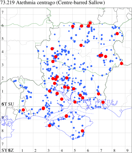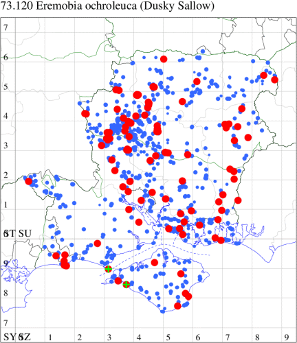 VC11: Earliest: Swaythling, Southampton, 03 Jun, 1 (MEdg) Latest: Sway, NF, 01 Sep, 0 (DMui) Max count: Hengistbury Head, 30 Jul, 23 (MJef)