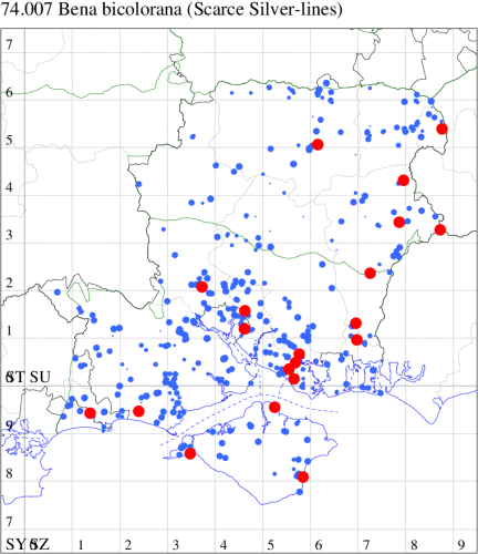 VC11: Broughton Down, one, 01 Jul (AMD); Marchwood, one, 11 Jul; one, 01 Jul; two, 11 Jul; one, 31 Jul (CTha); Woodlands, NF, one, 15 Feb (RBW); Ashurst, NF, one, 15 Feb (SAB); Mottisfont Abbey NT, nr Romsey, present, 06 Jun (TSto); Woodley, one, 04 Feb (NBin); Romsey, one, 03 Feb; one, 12 Mar (NRJ); Dibden Purlieu, one, 15 Feb; Dibden Purlieu, NF, one, 01 Jul; one, 01 Jul; one, 02 Jul; Dibden Purlieu, one, 10 Jul; one, 09 Aug (RAC); Sholing, Southampton, one, 15 Feb; Sholing, one, 15 Feb (ARC); Itchen Valley C.P., two, 19 Jul (F.M.G.); West End, one, 10 Jul; one, 27 Aug (AMD); Allbrook, one, 12 Mar; one, 27 Jun; one, 18 Jul (SIng); Brownwich Cliffs, Titchfield, one, 16 Aug; Botley Wood, one, 16 Feb; one, 15 Mar; two, 01 Nov (F.M.G.); Stubbington, two, 18 Feb (WMay); Funtley, one, 26 Jun; one, 01 Jul; one, 11 Jul (TDC); Lee-on-Solent, one, 25 Jun; one, 03 Sep (IHrg); Fareham, one, 23 Jun; one, 24 Jun; one, 01 Jul (ADT); one, 19 Jun; one, 02 Jul; one, 11 Jul; one, 07 Aug (IMcP); one, 26 Jun; one, 10 Jul (MLO); Waterlooville, one, 17 Mar; one, 14 May; two, 28 Jun; two, 30 Jun; one, 04 Jul; one, 17 Jul; one, 26 Jul; one, 30 Nov (DWhe); Christchurch: Cross Way, one, 29 Jun; one, 02 Jul; one, 03 Jul; one, 09 Jul; one, 30 Jul; one, 10 Aug (LPyk); Hengistbury Head NNR, one, 24 Jun (RPH); St Georges Drive, Bransgore, one, to lighted window, 07 Oct (SPMC); Sway, one, 27 Feb; one, 24 Jun; one, 26 Jun; one, 11 Jul; one, 16 Jul; one, 21 Jul; one, 28 Jul; two, 31 Jul (SKee);