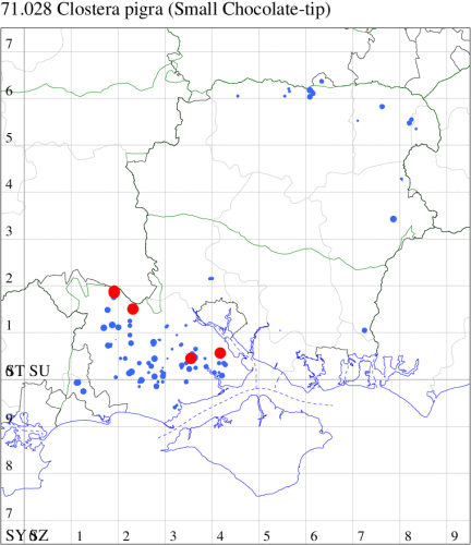 VC11: Hale, Fordingbridge, present, , 21 Jul; Hale Purlieu, NF, present, 21 Jul (JPuz); Howen Bottom, NF, three, 22 Jul (AMD); Pig Bush, NF, four, 24 Jul (NRJ); Dibden Purlieu, one, 22 Jul (RAC)