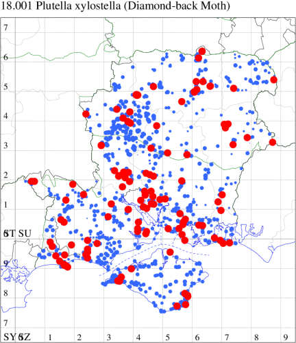 Common immigrant from mainland Europe, sometimes appearing in vast numbers in all types of habitat throughout the British Isles, becoming established under favourable conditions, when occasionally reaching plague proportions on farms where cabbages are grown. Widespread and in some years abundant in Hampshire and on the Isle of Wight. Wingspan 12-17 mm. Larva feeds on various Cruciferae beneath a silken web, over-wintering as a pupa.