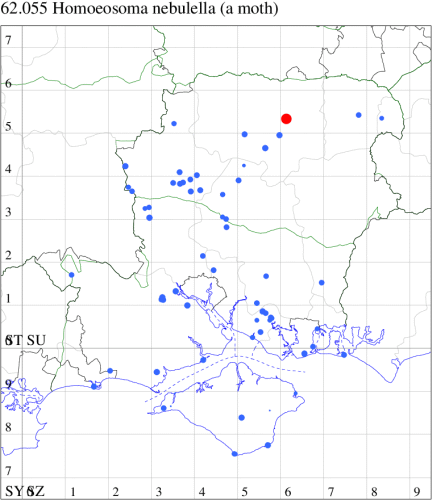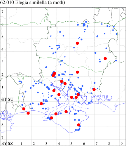 VC11: Brockwood, one, 26 Aug; one, 04 Sep; one, 09 Sep (SDut); Allbrook, one, 10 Aug; one, 11 Aug (SIng); Titchfield Common, one, 14 Aug (AShe); Portsdown, one, field obs., 20 Jul (DPH); Portsmouth, one, 01 Sep (IRT); Waterlooville, one, 26 Aug; one, 08 Sep; one, 22 Sep; one, to artificial light, 09 Oct (DWhe); Southleigh Forest, one, 22 Aug (CGree det. TJon); Merritown Heath, one, 29 Jun; present, 17 Aug (DFoo); Hurn, one, 31 Jul; two, 01 Aug (MJef); Hengistbury Head NNR, one, 01 Aug (HengistH det. RPH); Burton, nr Christchurch, one, 30 Jul (JStw);