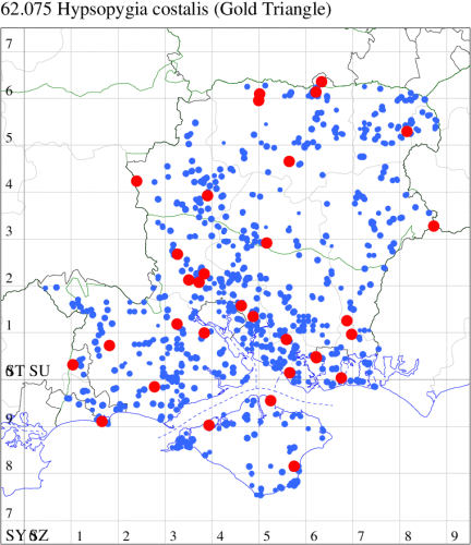 VC11: St Leonards, one, 03 Jul (ATur); Linford Bottom, one, 05 Aug (CLew); Marchwood, three, 11 Jul (CTha); Woodlands, NF, one, 03 Jun (RBW); Mottisfont, one, 23 Jul (TSto); Romsey, one, 31 Jul; one, 01 Aug; one, 21 Sep (SRC); one, 24 Jun; one, 29 Jun; one, 01 Jul; one, 06 Jul; one, 16 Jul (MJB); one, 21 Jun; one, 29 Jun; one, 29 Jul (NRJ); Itchen Valley C.P., one, 19 Jul (F.M.G.); Funtley, one, 01 Jul; one, 11 Jul (TDC); Lee-on-Solent, one, 24 Jun; one, 28 Jun; one, 07 Jul (IHrg); Portchester, one, 03 Jul; two, 07 Jul; one, 23 Jul; two, 31 Jul; one, 12 Aug; one, 17 Aug; one, 26 Aug; two, 27 Aug; two, 02 Sep (CEH, JGS); two, 24 Jun; two, 26 Jun; three, 30 Jun; one, 14 Jul; one, 18 Jul; one, 21 Jul; one, 26 Jul; one, 30 Jul; one, 03 Aug; one, 06 Aug; two, 29 Aug; one, 31 Aug; one, 30 Oct (DH-J); Portsmouth, one, 03 Jun; four, 25 Jun; two, 11 Jul; one, 16 Jul; two, 17 Jul; one, 18 Jul; two, 19 Jul; one, 28 Jul; two, 29 Jul; one, 01 Aug; one, 26 Aug (IRT); Waterlooville, one, 25 Jun; one, 02 Jul; one, 30 Jul (DWhe); Lovedean, one, 07 Aug (ARJa); Hengistbury Head NNR, one, 09 Aug (BKin det. MJef); Sway, one, 09 Jul; four, 31 Jul; four, 01 Aug; one, 07 Aug; one, 14 Aug (SKee);
