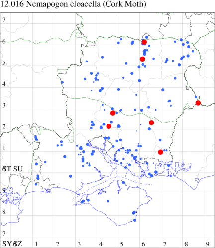 VC11: Woodlands, NF, one, 01 Aug (RBW); Chandlers Ford, one, 05 Aug (MWelf); Waterlooville, one, cUL lure, 29 May; one, to pheromone lure, attracted to CUL lure in the afternoon, 10 Jun; one, 30 Jun; one, 09 Aug (DWhe); West Meon, one, field obs., 10 Jun (AMD);
