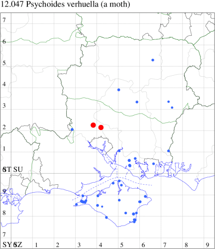 VC11: Romsey, 10, field obs., 30 Apr (MJB); one, to pheromone lure, to SAL lure at 14.00, 01 Aug (NRJ); Dibden Purlieu, present, field obs., 11 Apr; one, 29 Nov (RAC); Bevois Valley, Southampton, 20, 29 Apr (MCrei); Fareham, one, 26 Jun; one, 07 Nov; one, 14 Dec (MLO); The Moors NR, Bishop's Waltham, one, field obs., 11 May; Bishop's Waltham, one, field obs., 15 May (DTru); Portchester, one, 23 May (DH-J); Waterlooville, one, 30 Apr; one, sAL lure, 17 Jun; one, to pheromone lure, came to TIP lure, 21 Jun; one, 28 Jun; three, to SCO lure, 30 Jul; one, 30 Nov (DWhe); New Milton, one, field obs., 25 Apr; Sway, one, field obs., 06 May (SKee);